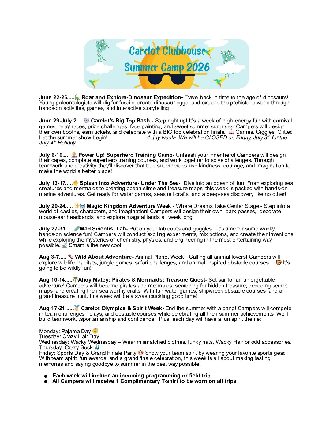 Embark on an unforgettable summer journey with our team of educated and experienced counselors! At our Summer Camp Program, children aged Kindergarten and up to 12 years old are invited to join us for weeks packed with fun-filled activities and thrilling adventures. Each week revolves around an exciting theme, complemented by engaging field trips or immersive programs to enhance the experience. From arts and crafts to science explorations, outdoor adventures, special guest appearances, water play, and games, there’s something for every child to enjoy and explore. Plus, they’ll have the chance to make new friends in a welcoming environment. Join us for a summer of excitement and endless memories!